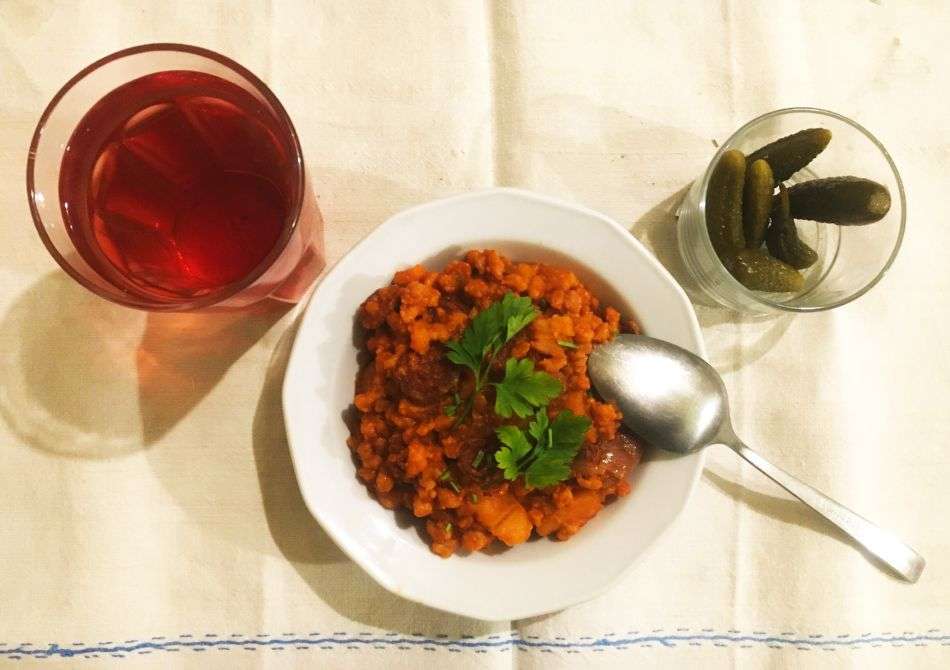 Szórjuk finomra aprított petrezselyemzölddel, tálaljuk csípős zöldpaprikával és ecetes savanyúságokkal. És igen, igény szerint egy nagy kanál tejföl is ráférhet.